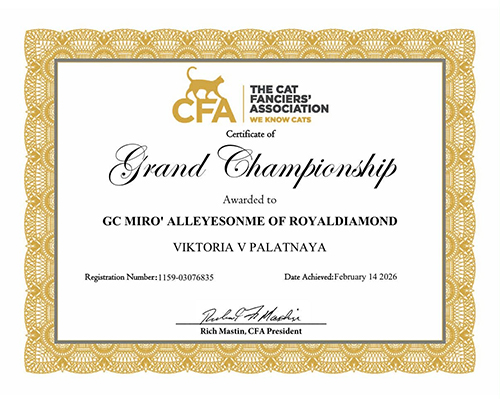 On September 2020 we received our first Tier for Cattery of Distinction. We thank all our friends who trusted us and showed our cats.